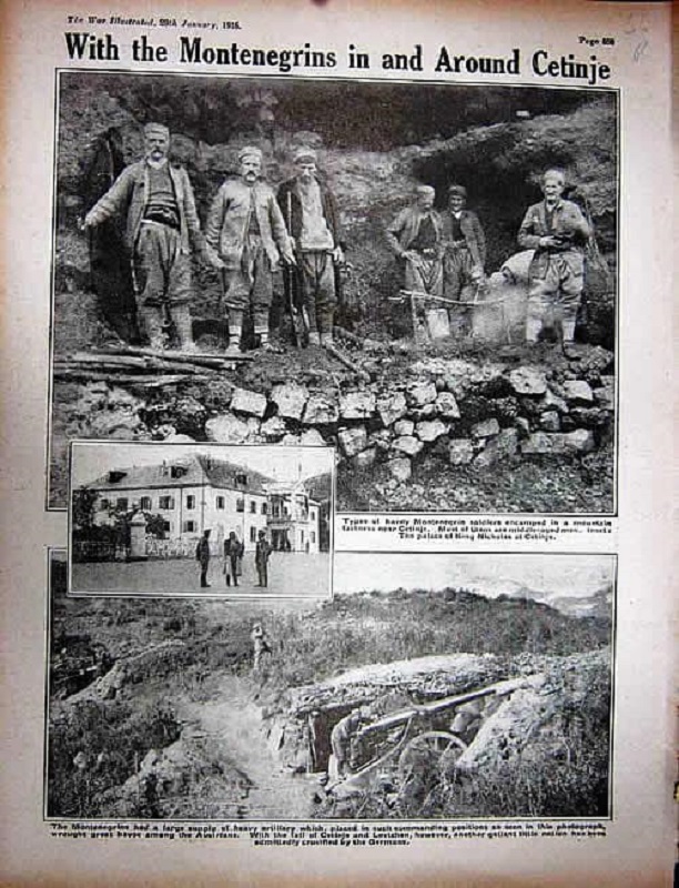 Londonski časopis “The War Illustrated” od 29. januara 1916. u izvještaju pod naslovom “S Crnogorcima u i oko Cetinja” objavljuje fotografiju crnogorske artiljerije zamaskirane u lovćenskom kršu tokom odsudnih borbi.